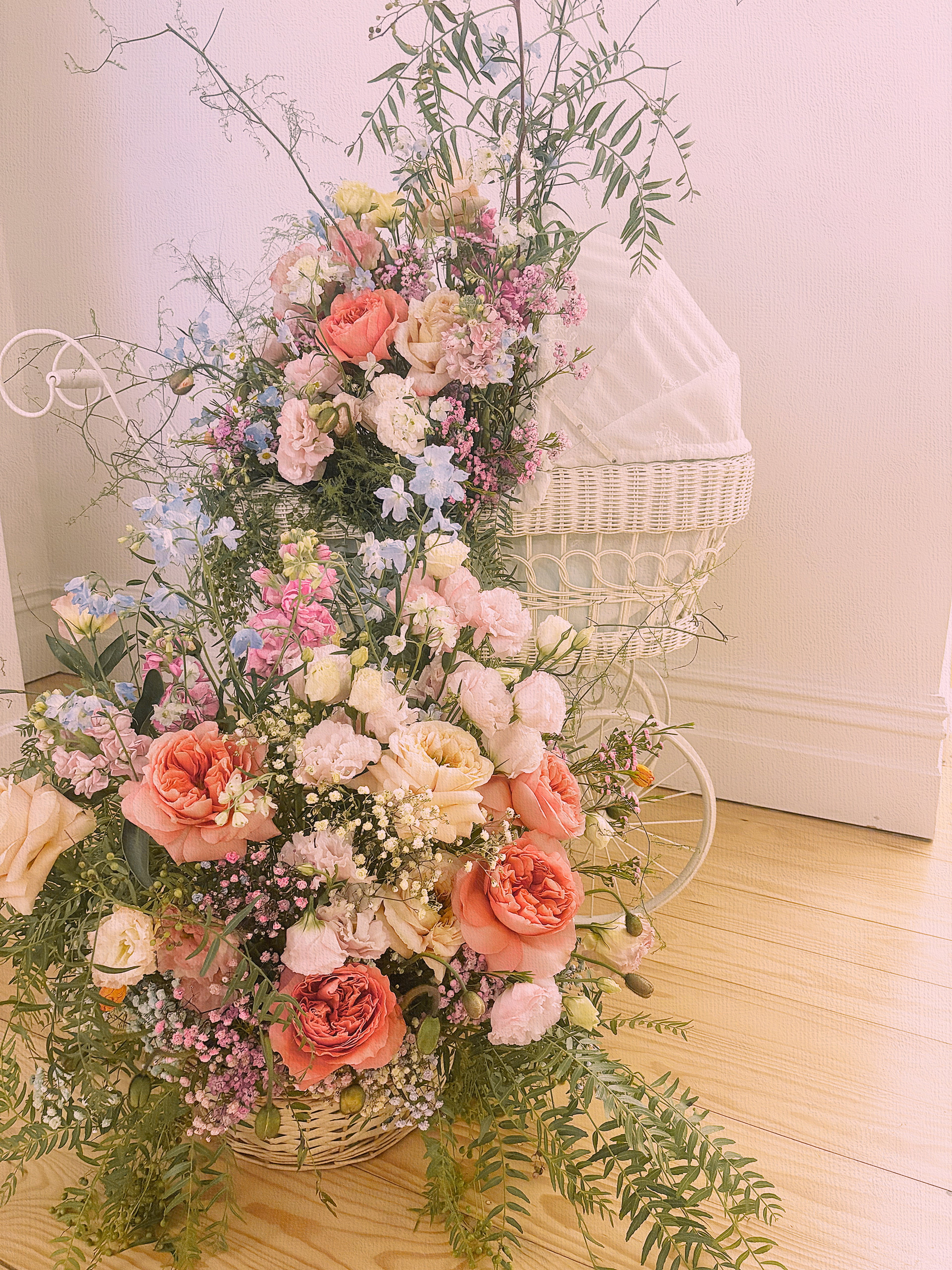 Soft, garden style arrangements with whimsical movement and pastel tones, thoughtfully designed to make your celebration feel like a little love story.
