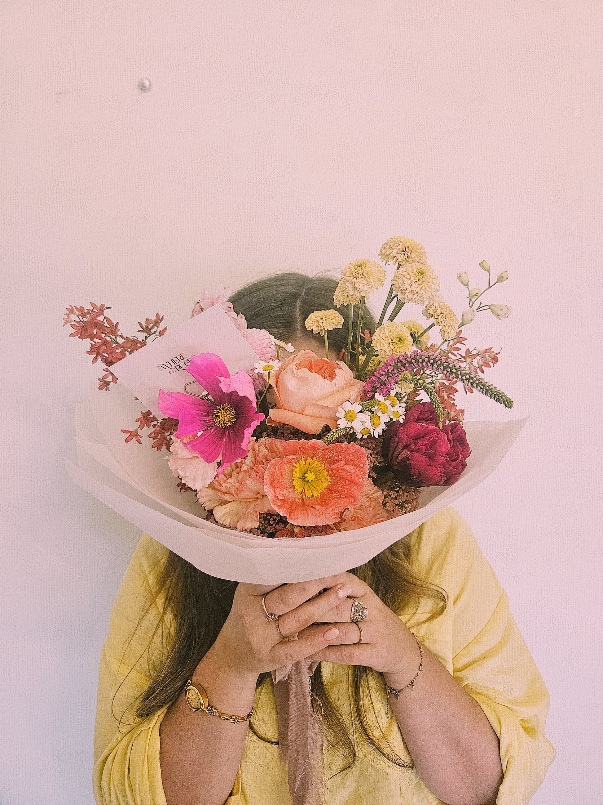 Please note: Flower varieties may vary slightly due to seasonal availability, but her overall colour palette and style will always remain true.