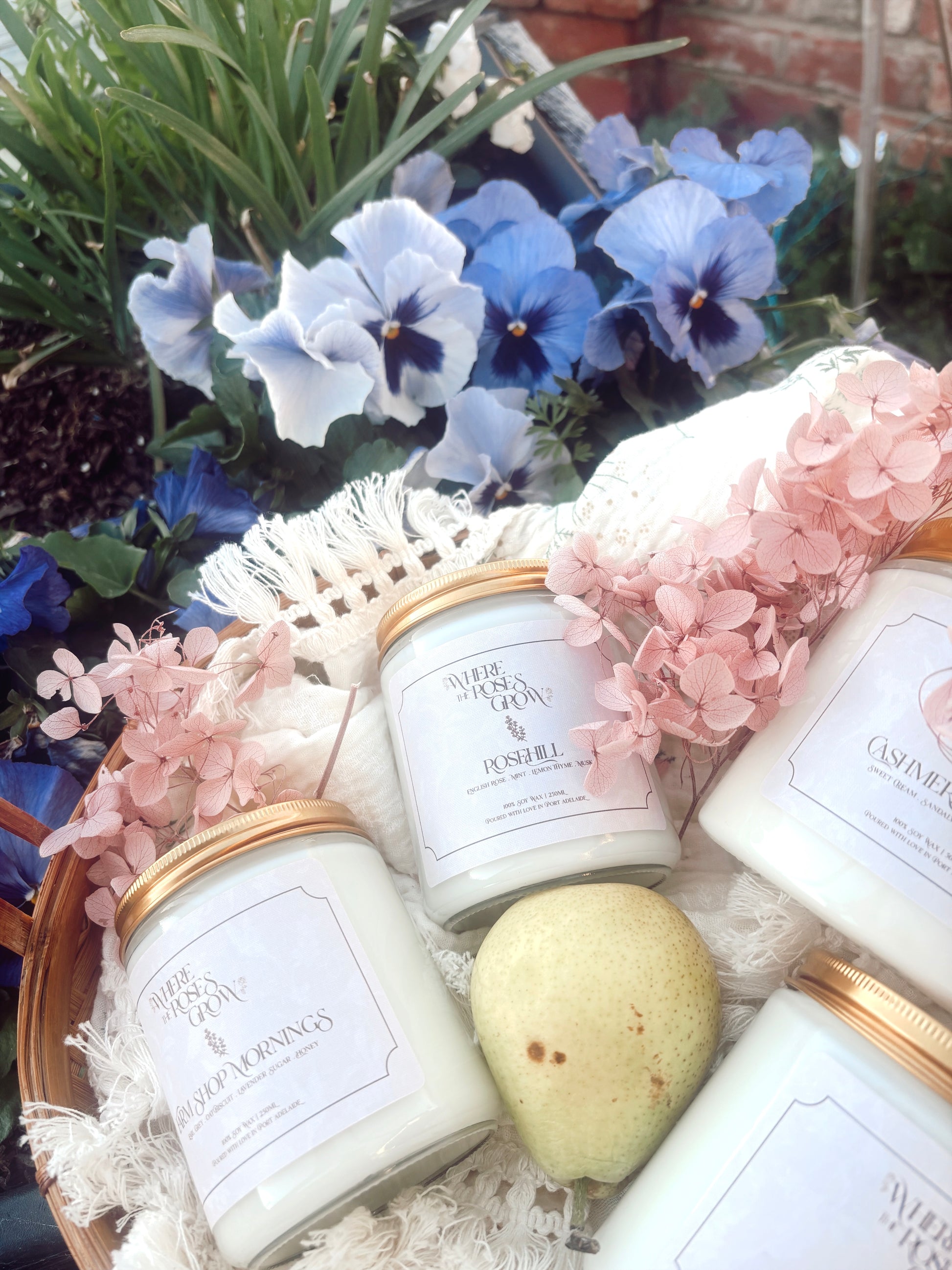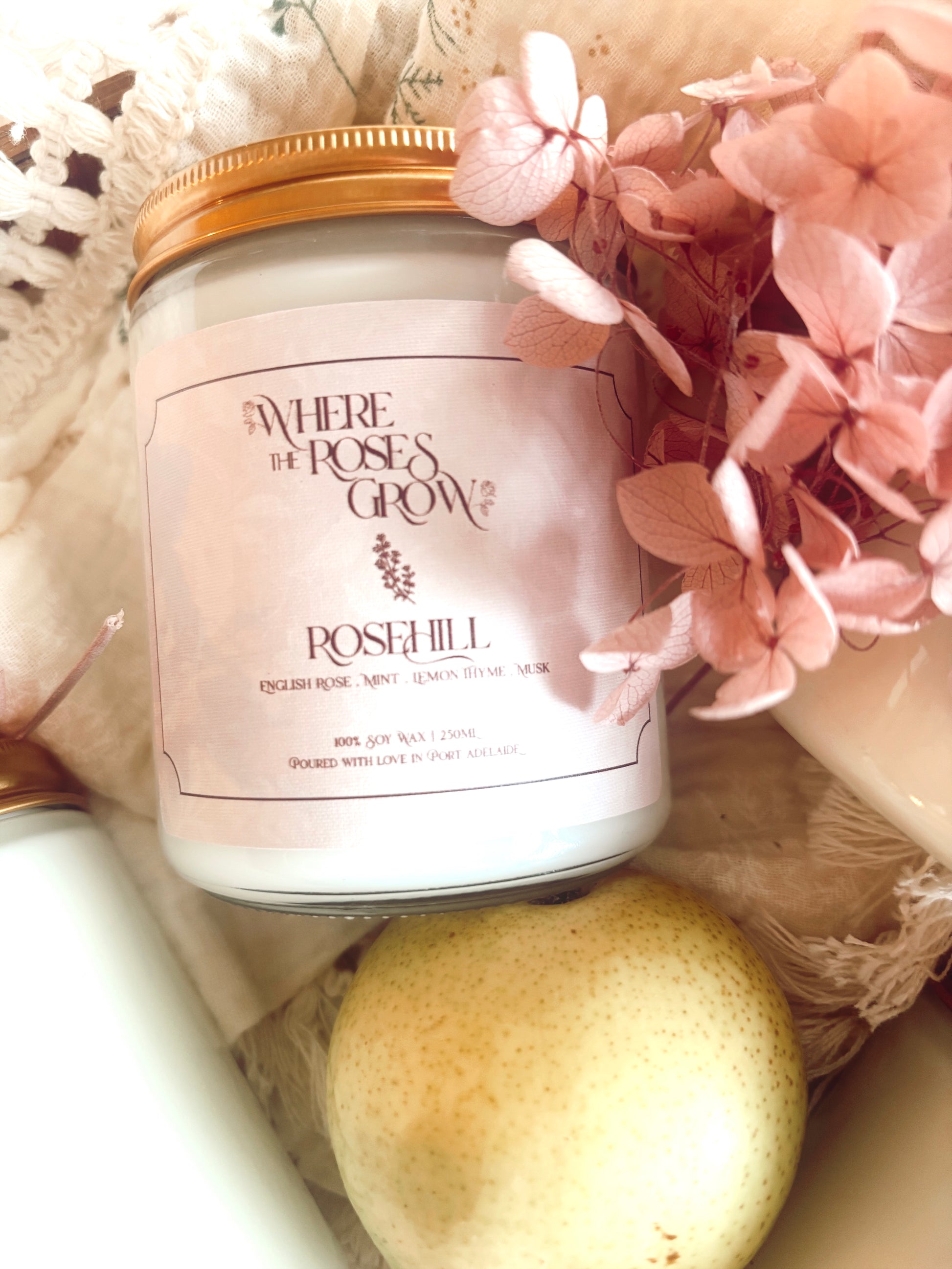 Welcome to the signature collection of hand-poured soy candles, exclusive to Where the Roses Grow. Crafted in Adelaide with 100% natural soy wax, each scented candle is blended and poured with care, inspired by my home, my garden, and the timeless beauty of the English countryside.